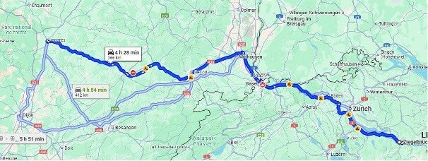 31.8. Die Fahrt geht weiter über Luxeuil-les-Bains nach Mühlhausen und dann nach Reims.