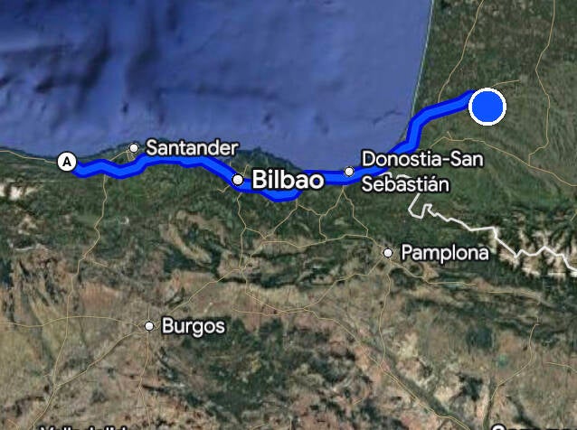 Frühaufstehen und ade Château, bereits um 5 Uhr fuhr ich' weiter nach Spanien. Ziel ist ein Strand mit speziellen Gesteinsformationen. Der spanische Staat will die Besucherströme regeln und ich musste mich online für den Besuch anmelden. Wichtig wäre, dass ich so ca. um 14 Uhr dort bin, denn bei Ebbe soll es eindrücklicher sein.