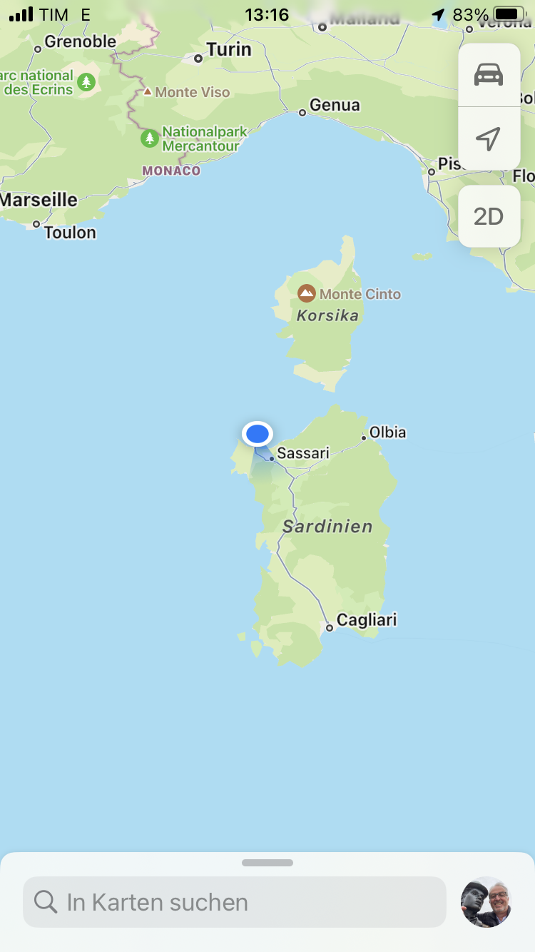 14 Uhr, Zwischenhalt in Porto Torres bald passieren wir die Meerenge zwischen Korsika und Sardinien.