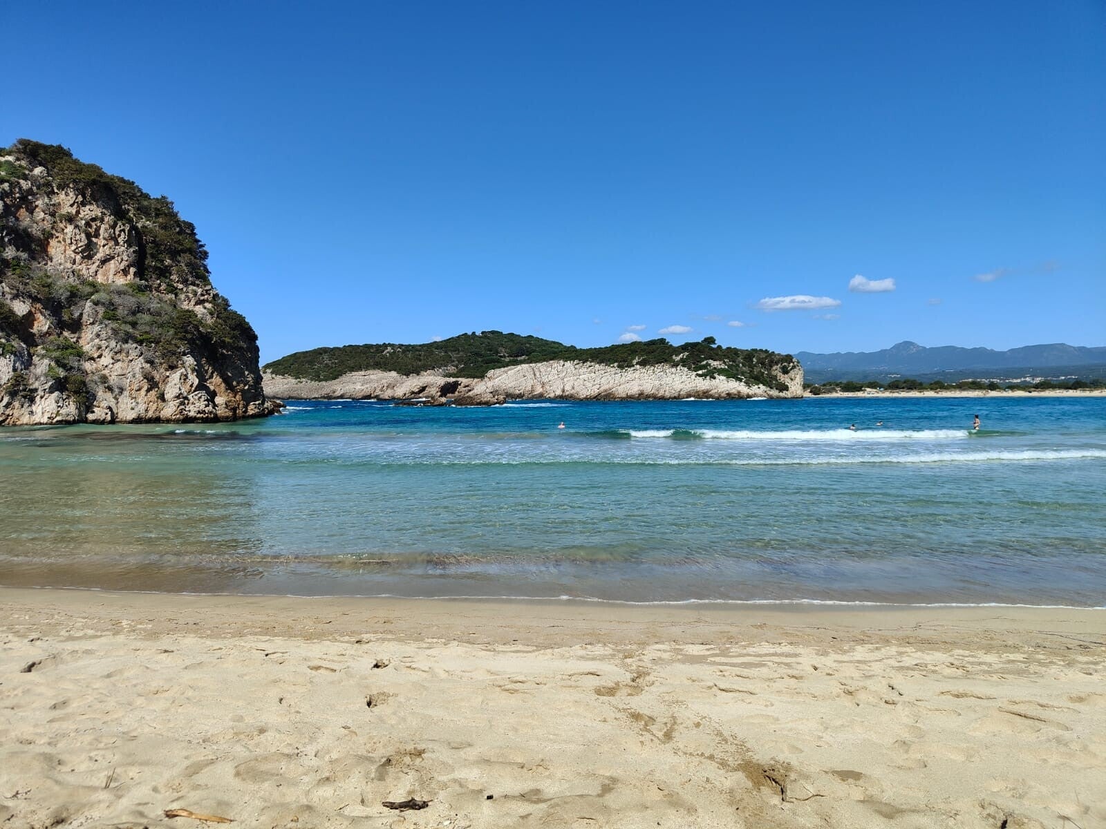 Am Strand kann man Liegen und Sonnenschirme mieten. Getränke werden direkt serviert und weil Nachsaison ist es beschaulich mit wenigen Touristen. Das Meer noch angenehm warm und der Sand ganz fein.
