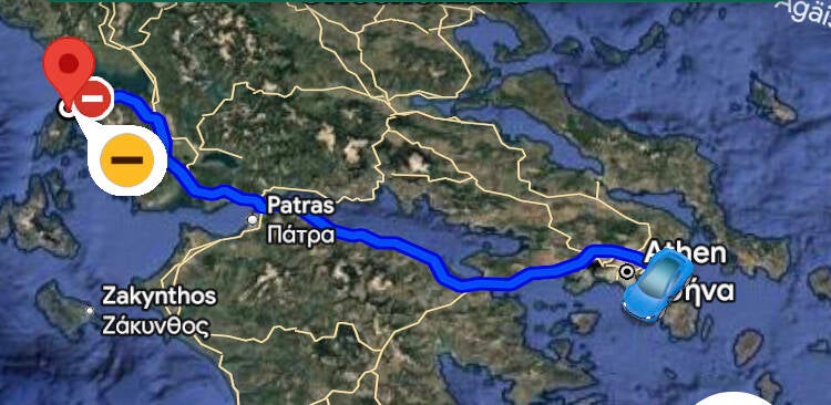 6.10. Von Lefkada nach Athen. Ein Tag zum Vergessen, Probleme mit Ladestationen und viel Starkregen. Dank der Hilfe einer netten Tankwartin habe ich es doch noch geschafft.