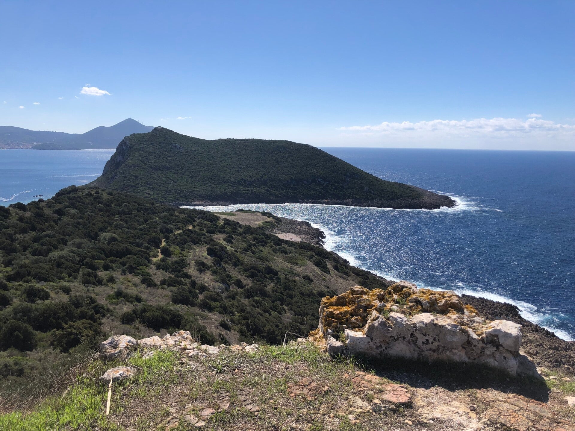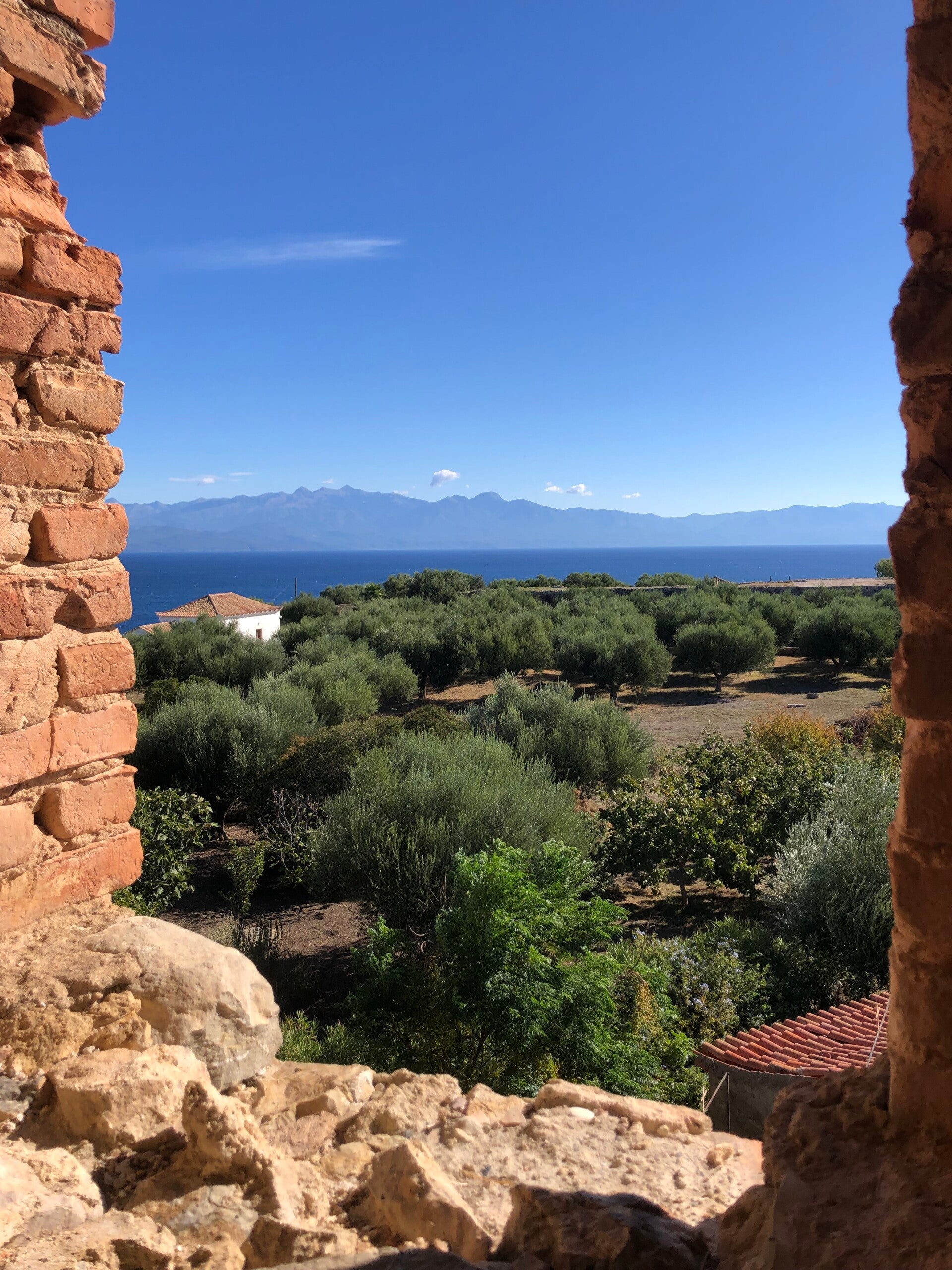 Der Tip von Erwin war dann eine Wucht. Auto am Fuss eines Berges abgestellt, hoch zur Burg Palaiokastro mit einer herrlichen Rundsicht aufgestiegen und dann runterklettern zur Ochsenbauchbucht. Schwimmen in dieser Bucht, die nur einen schmalen Durchgang zum offenen Meer hat.