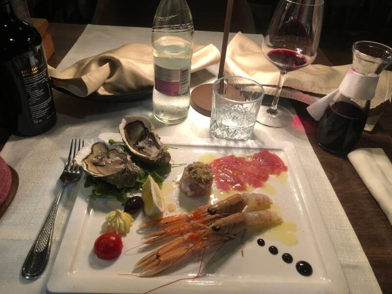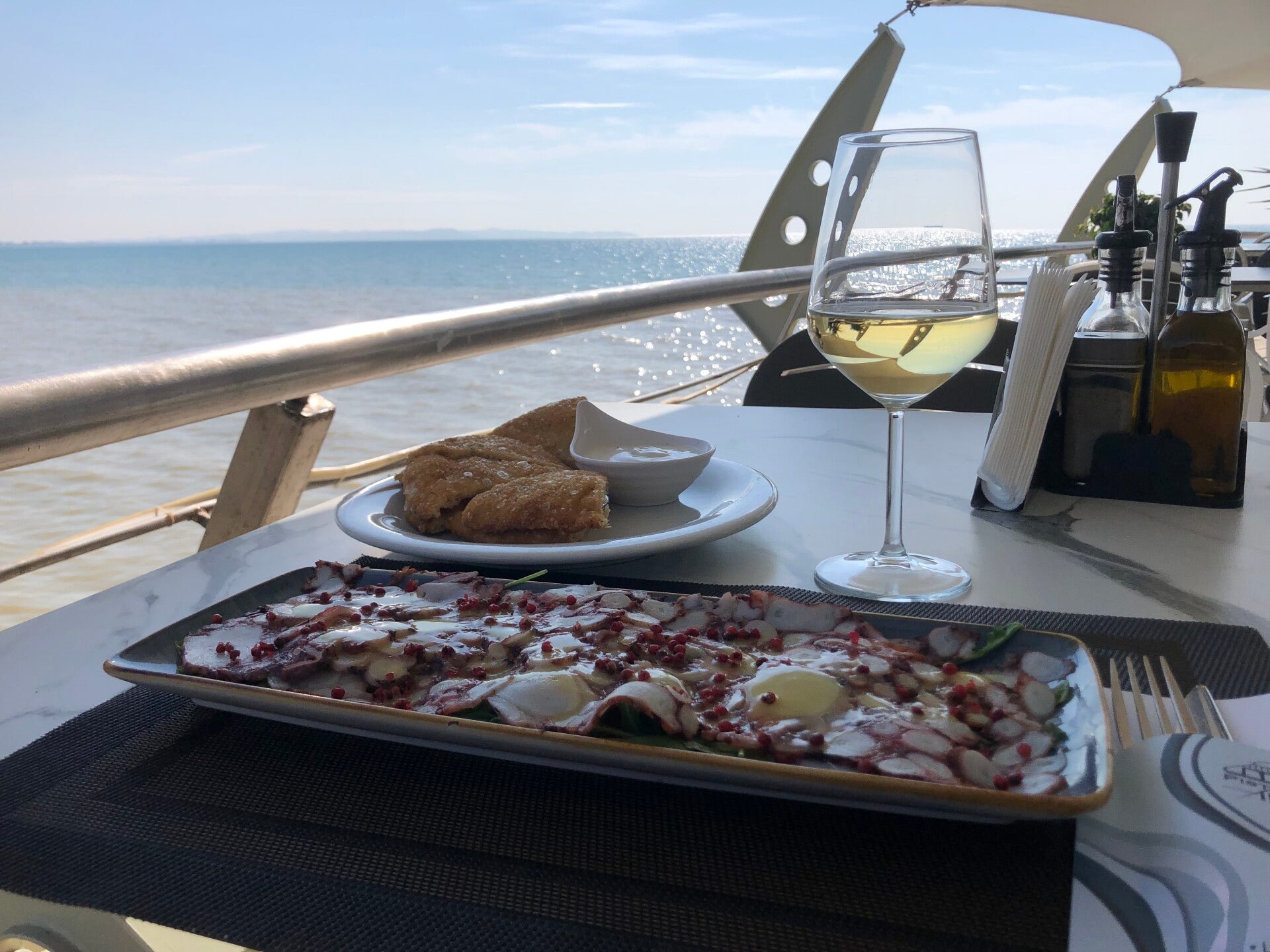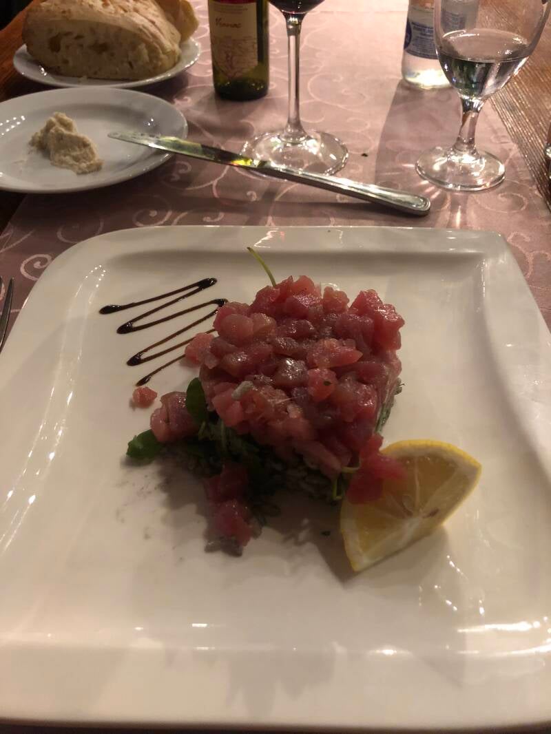 Thunfischtartar mit lokalem Rotwein direkt am Hafen.